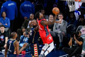 体育资讯2月16日讯 NBA全明星正赛决赛,美国新星队47-21击败美国星条队,夺得冠军。