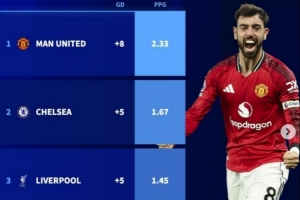 欧冠资格战!英超3-6名2026年场均积分:曼联大幅领先,维拉最少
