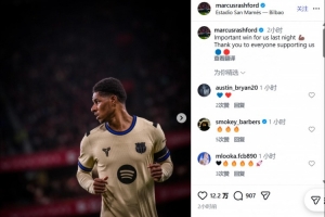 体育资讯3月9日讯 在巴萨1-0击败毕尔巴鄂竞技后,拉什福德更新了社媒。
