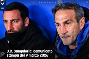 桑普多利亚俱乐部宣布解除安杰洛·格雷古奇一线队主教练的职务,俱乐部对格雷古奇及其助手萨尔瓦托雷·福蒂在任期内表现出的敬业精神和专业素养表示感谢。过渡期内,球队将暂时由技术顾问阿蒂利奥·隆巴多接管,直至找到长期解决方案。